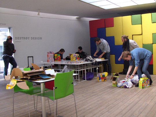 Den kendte gadekunstner Jan Vormann holdte i dag workshop i Århus Kunstbygning, og herefter gik deltagerne sammen ud på gaderne i Århus for at lave revne i huse med legoklodser.