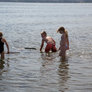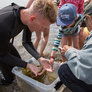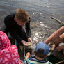 På et velbesøgt arrangement blev der med stor iver fanget krabber og rejer ved Skæring Strand. Fangsten blev tilberedt over åben ild, og efterfølgende blev der smagt på de frembragte lækkerier.