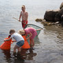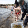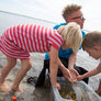 Strandkokke fra Naturhistorisk Museum og Smag på Aarhus turnerer rundt til strandene fra Skæring til Moesgård og fortæller om den spiselige strandnatur og har udstyr med til at fange, indsamle og tilberede strandens råvarer.