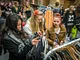Vagtskiftet ved Marselisborg Slot skærtorsdag kl. 12 tiltrak mange fremmødte, mens politiets indsatsleder undervejs tog sig tid til at besvare spørgsmål fra en nysgerrig dreng.