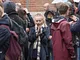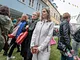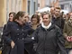 Vagtskiftet ved Marselisborg Slot skærtorsdag kl. 12 tiltrak mange fremmødte, mens politiets indsatsleder undervejs tog sig tid til at besvare spørgsmål fra en nysgerrig dreng.