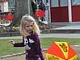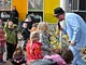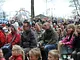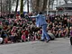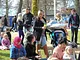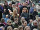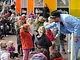 Vagtskiftet ved Marselisborg Slot skærtorsdag kl. 12 tiltrak mange fremmødte, mens politiets indsatsleder undervejs tog sig tid til at besvare spørgsmål fra en nysgerrig dreng.