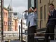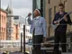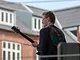 Vagtskiftet ved Marselisborg Slot skærtorsdag kl. 12 tiltrak mange fremmødte, mens politiets indsatsleder undervejs tog sig tid til at besvare spørgsmål fra en nysgerrig dreng.