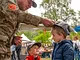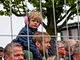 Vagtskiftet ved Marselisborg Slot skærtorsdag kl. 12 tiltrak mange fremmødte, mens politiets indsatsleder undervejs tog sig tid til at besvare spørgsmål fra en nysgerrig dreng.