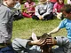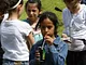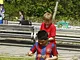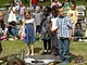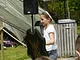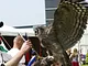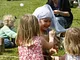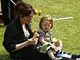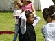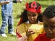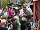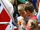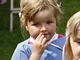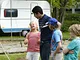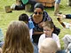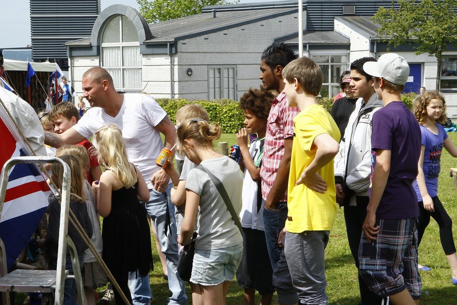 Vagtskiftet ved Marselisborg Slot skærtorsdag kl. 12 tiltrak mange fremmødte, mens politiets indsatsleder undervejs tog sig tid til at besvare spørgsmål fra en nysgerrig dreng.