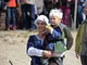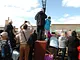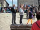Vagtskiftet ved Marselisborg Slot skærtorsdag kl. 12 tiltrak mange fremmødte, mens politiets indsatsleder undervejs tog sig tid til at besvare spørgsmål fra en nysgerrig dreng.