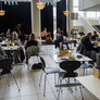 Musikhusets foyer og café blev søndag eftermiddag fyldt med skønne toner fra sanger og sangskriver Mikkel Julius.