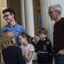 Vagtskiftet ved Marselisborg Slot skærtorsdag kl. 12 tiltrak mange fremmødte, mens politiets indsatsleder undervejs tog sig tid til at besvare spørgsmål fra en nysgerrig dreng.