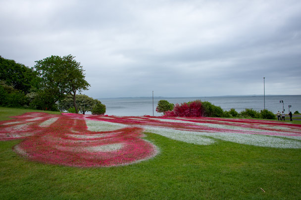 Det meget diskuterede Aros-kunstværk The Garden har delt vandene, og givet anledning til rigtig mange diskussioner. Men man kan også benytte lejligheden til at se Mindeparkens fantastiske rhododendroner som i øjeblikket blomstrer i fuld flor. Selom vejret var blæsende og overskyet kunne man også nyde sin frokost i det fri. Spotterfotograf Jens Ravn kom forbi og forevigede begge dele.