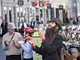 Vagtskiftet ved Marselisborg Slot skærtorsdag kl. 12 tiltrak mange fremmødte, mens politiets indsatsleder undervejs tog sig tid til at besvare spørgsmål fra en nysgerrig dreng.
