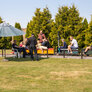 Familien var på tur, picnic var pakket, børn og voksne hygge på det dejlig grønne græs, og rundt om dem kørte model togene.
