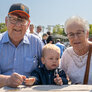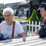 Vagtskiftet ved Marselisborg Slot skærtorsdag kl. 12 tiltrak mange fremmødte, mens politiets indsatsleder undervejs tog sig tid til at besvare spørgsmål fra en nysgerrig dreng.