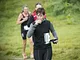 Vagtskiftet ved Marselisborg Slot skærtorsdag kl. 12 tiltrak mange fremmødte, mens politiets indsatsleder undervejs tog sig tid til at besvare spørgsmål fra en nysgerrig dreng.