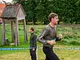 Vagtskiftet ved Marselisborg Slot skærtorsdag kl. 12 tiltrak mange fremmødte, mens politiets indsatsleder undervejs tog sig tid til at besvare spørgsmål fra en nysgerrig dreng.