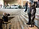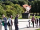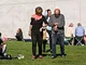 Vagtskiftet ved Marselisborg Slot skærtorsdag kl. 12 tiltrak mange fremmødte, mens politiets indsatsleder undervejs tog sig tid til at besvare spørgsmål fra en nysgerrig dreng.
