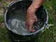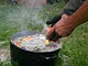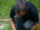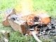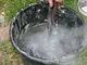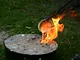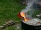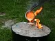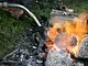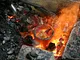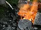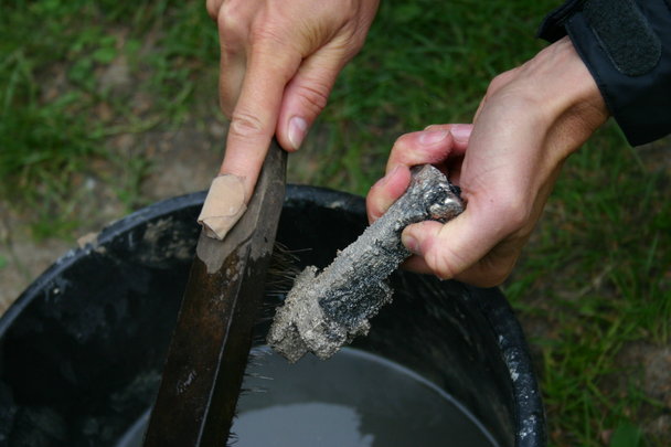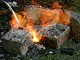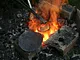 Støbeformen er fyldt ud med bronze, som nu skal køles af og blive hård.