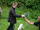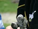 Vagtskiftet ved Marselisborg Slot skærtorsdag kl. 12 tiltrak mange fremmødte, mens politiets indsatsleder undervejs tog sig tid til at besvare spørgsmål fra en nysgerrig dreng.