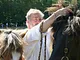 Vagtskiftet ved Marselisborg Slot skærtorsdag kl. 12 tiltrak mange fremmødte, mens politiets indsatsleder undervejs tog sig tid til at besvare spørgsmål fra en nysgerrig dreng.