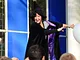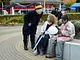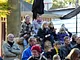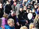 Vagtskiftet ved Marselisborg Slot skærtorsdag kl. 12 tiltrak mange fremmødte, mens politiets indsatsleder undervejs tog sig tid til at besvare spørgsmål fra en nysgerrig dreng.
