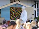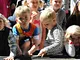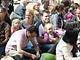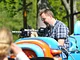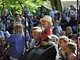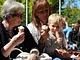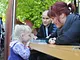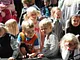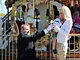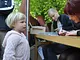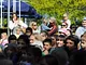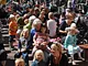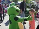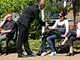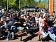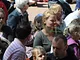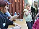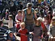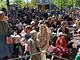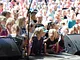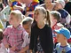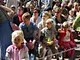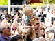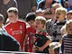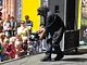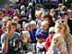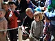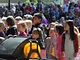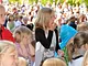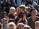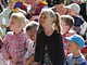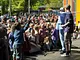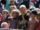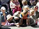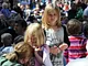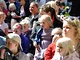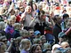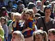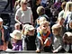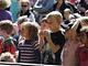 Vagtskiftet ved Marselisborg Slot skærtorsdag kl. 12 tiltrak mange fremmødte, mens politiets indsatsleder undervejs tog sig tid til at besvare spørgsmål fra en nysgerrig dreng.