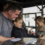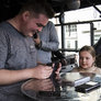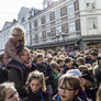 Vagtskiftet ved Marselisborg Slot skærtorsdag kl. 12 tiltrak mange fremmødte, mens politiets indsatsleder undervejs tog sig tid til at besvare spørgsmål fra en nysgerrig dreng.