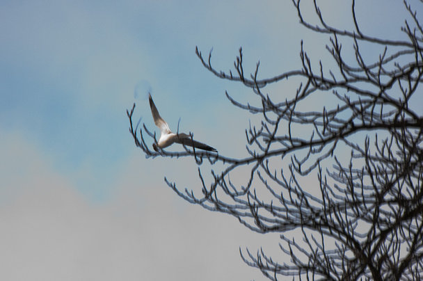 Indrømmet - det er ikke specielt skarpt, men hvis man ser nøje efter, så har mågen faktisk en mus i næbbet.