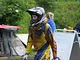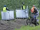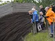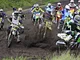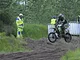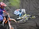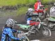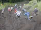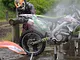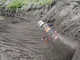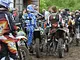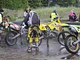 Mellem bygerne var det dejligt vejr, men den fugtige bane gav kø ved vaskepladsen, hvor både cykler og kørere blev skyllet rene for jord og mudder.