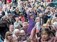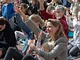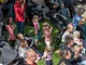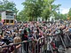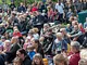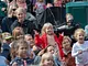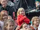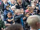 Vagtskiftet ved Marselisborg Slot skærtorsdag kl. 12 tiltrak mange fremmødte, mens politiets indsatsleder undervejs tog sig tid til at besvare spørgsmål fra en nysgerrig dreng.
