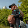 Vagtskiftet ved Marselisborg Slot skærtorsdag kl. 12 tiltrak mange fremmødte, mens politiets indsatsleder undervejs tog sig tid til at besvare spørgsmål fra en nysgerrig dreng.