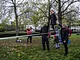 Vagtskiftet ved Marselisborg Slot skærtorsdag kl. 12 tiltrak mange fremmødte, mens politiets indsatsleder undervejs tog sig tid til at besvare spørgsmål fra en nysgerrig dreng.