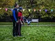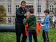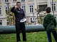 Vagtskiftet ved Marselisborg Slot skærtorsdag kl. 12 tiltrak mange fremmødte, mens politiets indsatsleder undervejs tog sig tid til at besvare spørgsmål fra en nysgerrig dreng.
