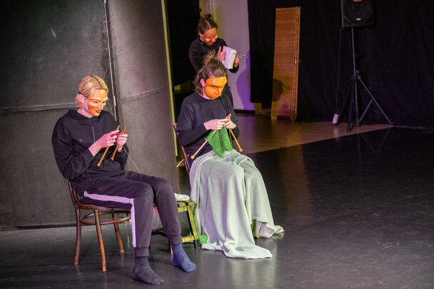 Eleverne kaster sig ud i gribende dramatik, ekspressiv poesi, fordækt maskespil, lårklaskende humor og galopperende absurditeter – det hele kogt sammen til en farverig collage.