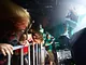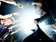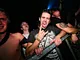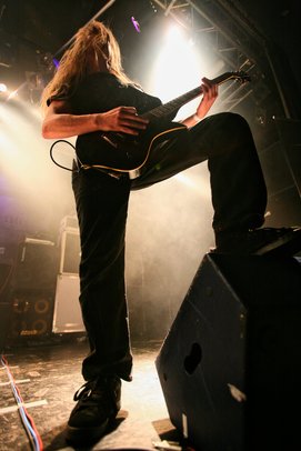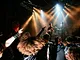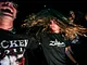 metal med sorte t-shirts, langt hår og headbanging.