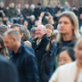 Vagtskiftet ved Marselisborg Slot skærtorsdag kl. 12 tiltrak mange fremmødte, mens politiets indsatsleder undervejs tog sig tid til at besvare spørgsmål fra en nysgerrig dreng.