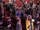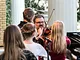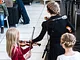 Vagtskiftet ved Marselisborg Slot skærtorsdag kl. 12 tiltrak mange fremmødte, mens politiets indsatsleder undervejs tog sig tid til at besvare spørgsmål fra en nysgerrig dreng.