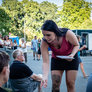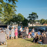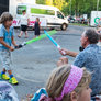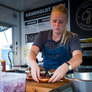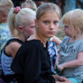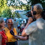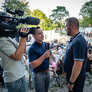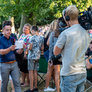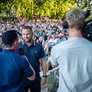 Vagtskiftet ved Marselisborg Slot skærtorsdag kl. 12 tiltrak mange fremmødte, mens politiets indsatsleder undervejs tog sig tid til at besvare spørgsmål fra en nysgerrig dreng.