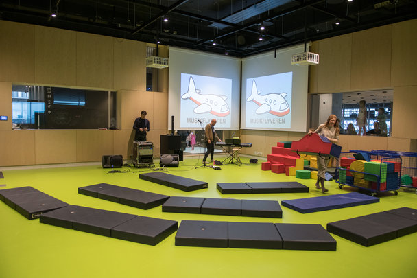 Så kom med Musikflyveren til Dokk1, og tog børnene med på en ordentlig flyvetur jorden rundt. Bl.a. til Argentina for at danse tango, til Sydafrika på safari og til Kina for at flyve på en drage.