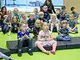 Vagtskiftet ved Marselisborg Slot skærtorsdag kl. 12 tiltrak mange fremmødte, mens politiets indsatsleder undervejs tog sig tid til at besvare spørgsmål fra en nysgerrig dreng.
