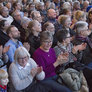 Vagtskiftet ved Marselisborg Slot skærtorsdag kl. 12 tiltrak mange fremmødte, mens politiets indsatsleder undervejs tog sig tid til at besvare spørgsmål fra en nysgerrig dreng.