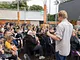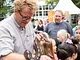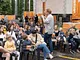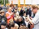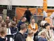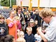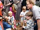 Vagtskiftet ved Marselisborg Slot skærtorsdag kl. 12 tiltrak mange fremmødte, mens politiets indsatsleder undervejs tog sig tid til at besvare spørgsmål fra en nysgerrig dreng.