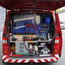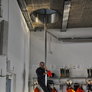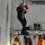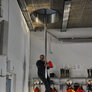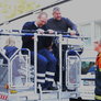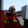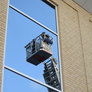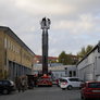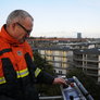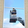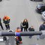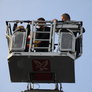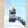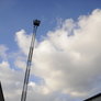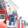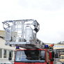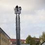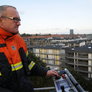 Trindsøvej slog dørene op og foldede stigen ud, så deres udsendte kunne komme 30 meter op i blæsten, hvor kurven nemt svajer en meter til hver side.