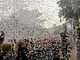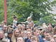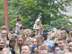 Vagtskiftet ved Marselisborg Slot skærtorsdag kl. 12 tiltrak mange fremmødte, mens politiets indsatsleder undervejs tog sig tid til at besvare spørgsmål fra en nysgerrig dreng.