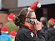 Vagtskiftet ved Marselisborg Slot skærtorsdag kl. 12 tiltrak mange fremmødte, mens politiets indsatsleder undervejs tog sig tid til at besvare spørgsmål fra en nysgerrig dreng.