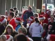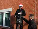 Vagtskiftet ved Marselisborg Slot skærtorsdag kl. 12 tiltrak mange fremmødte, mens politiets indsatsleder undervejs tog sig tid til at besvare spørgsmål fra en nysgerrig dreng.