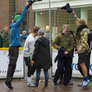 Vagtskiftet ved Marselisborg Slot skærtorsdag kl. 12 tiltrak mange fremmødte, mens politiets indsatsleder undervejs tog sig tid til at besvare spørgsmål fra en nysgerrig dreng.
