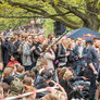 Vagtskiftet ved Marselisborg Slot skærtorsdag kl. 12 tiltrak mange fremmødte, mens politiets indsatsleder undervejs tog sig tid til at besvare spørgsmål fra en nysgerrig dreng.