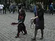 Vagtskiftet ved Marselisborg Slot skærtorsdag kl. 12 tiltrak mange fremmødte, mens politiets indsatsleder undervejs tog sig tid til at besvare spørgsmål fra en nysgerrig dreng.