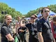 Vagtskiftet ved Marselisborg Slot skærtorsdag kl. 12 tiltrak mange fremmødte, mens politiets indsatsleder undervejs tog sig tid til at besvare spørgsmål fra en nysgerrig dreng.