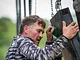 Vagtskiftet ved Marselisborg Slot skærtorsdag kl. 12 tiltrak mange fremmødte, mens politiets indsatsleder undervejs tog sig tid til at besvare spørgsmål fra en nysgerrig dreng.