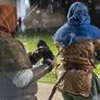 Vagtskiftet ved Marselisborg Slot skærtorsdag kl. 12 tiltrak mange fremmødte, mens politiets indsatsleder undervejs tog sig tid til at besvare spørgsmål fra en nysgerrig dreng.